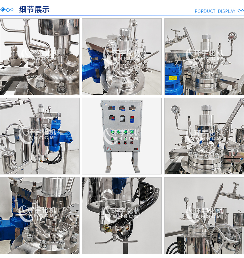 其他附件 如果用戶在釜蓋、釜體開口、內(nèi)部結(jié)構(gòu)、壓力高低、攪拌槳葉、及增加其他輔助裝置(如冷凝回流裝置、冷凝器、恒壓加料罐、接收裝置)等有特殊要求,可完全按用戶的要求加工制造