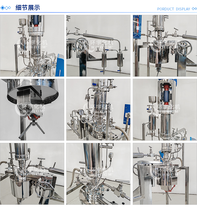 其他附件 如果用戶在釜蓋、釜體開口、內(nèi)部結(jié)構(gòu)、壓力高低、攪拌槳葉、及增加其他輔助裝置(如冷凝回流裝置、冷凝器、恒壓加料罐、接收裝置)等有特殊要求,可完全按用戶的要求加工制造