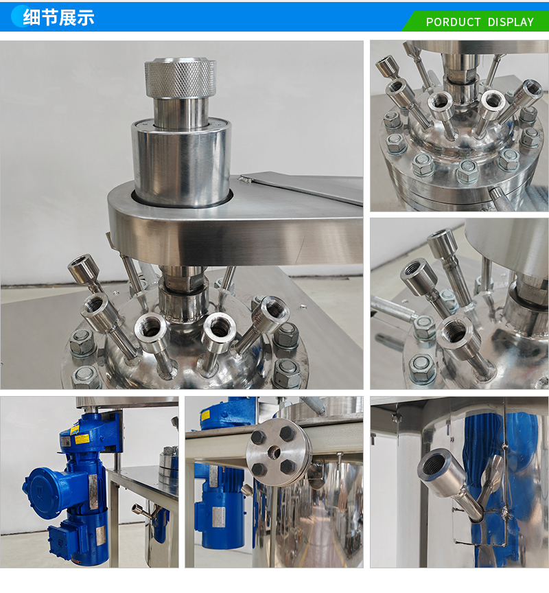 其他附件 如果用戶在釜蓋、釜體開口、內(nèi)部結(jié)構(gòu)、壓力高低、攪拌槳葉、及增加其他輔助裝置(如冷凝回流裝置、冷凝器、恒壓加料罐、接收裝置)等有特殊要求,可完全按用戶的要求加工制造