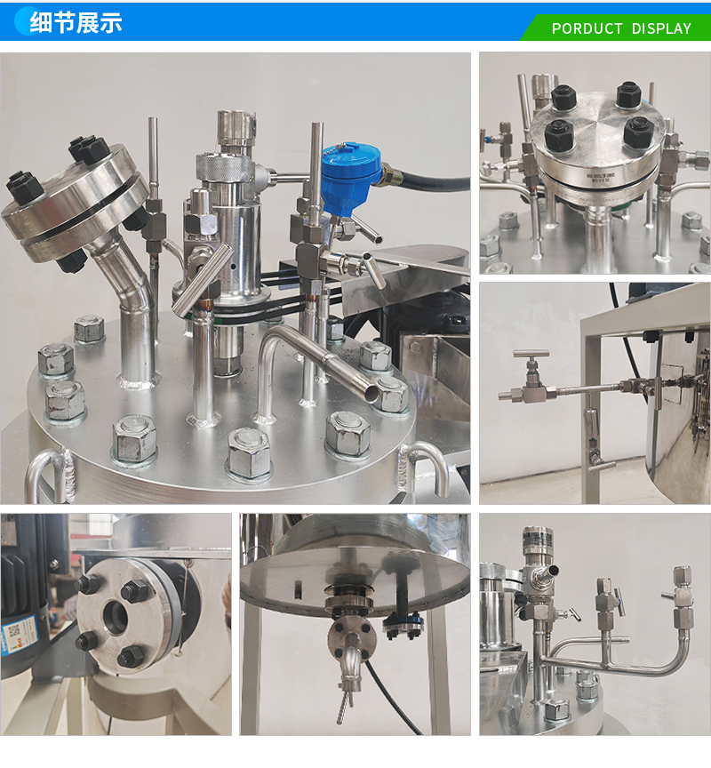 其他附件 如果用戶在釜蓋、釜體開口、內(nèi)部結(jié)構(gòu)、壓力高低、攪拌槳葉、及增加其他輔助裝置(如冷凝回流裝置、冷凝器、恒壓加料罐、接收裝置)等有特殊要求,可完全按用戶的要求加工制造