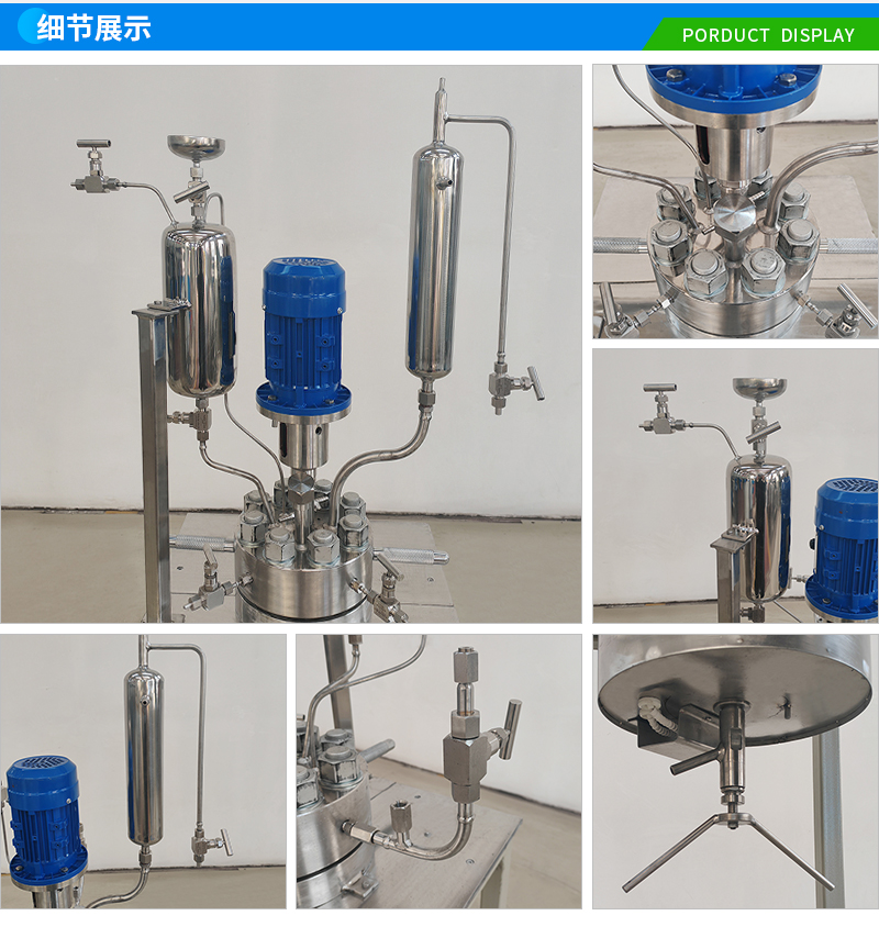 其他附件 如果用戶在釜蓋、釜體開口、內(nèi)部結(jié)構(gòu)、壓力高低、攪拌槳葉、及增加其他輔助裝置(如冷凝回流裝置、冷凝器、恒壓加料罐、接收裝置)等有特殊要求,可完全按用戶的要求加工制造